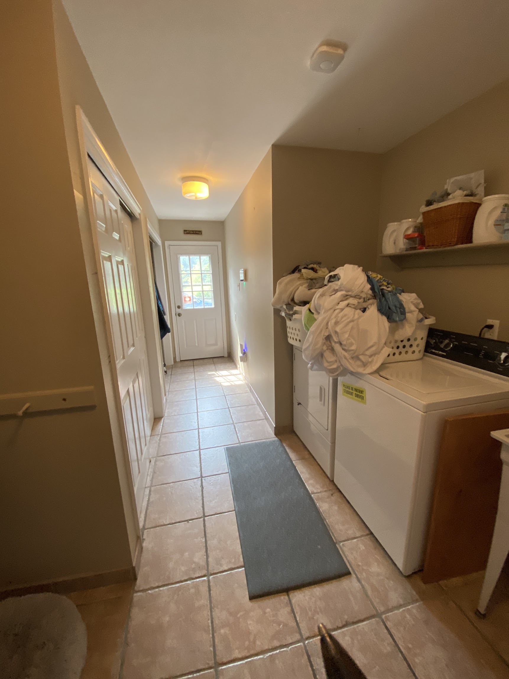 Polished quartz countertops throughout the kitchen, mudroom, and bathroom tie the spaces together through elegant veining and a soft, natural sheen.