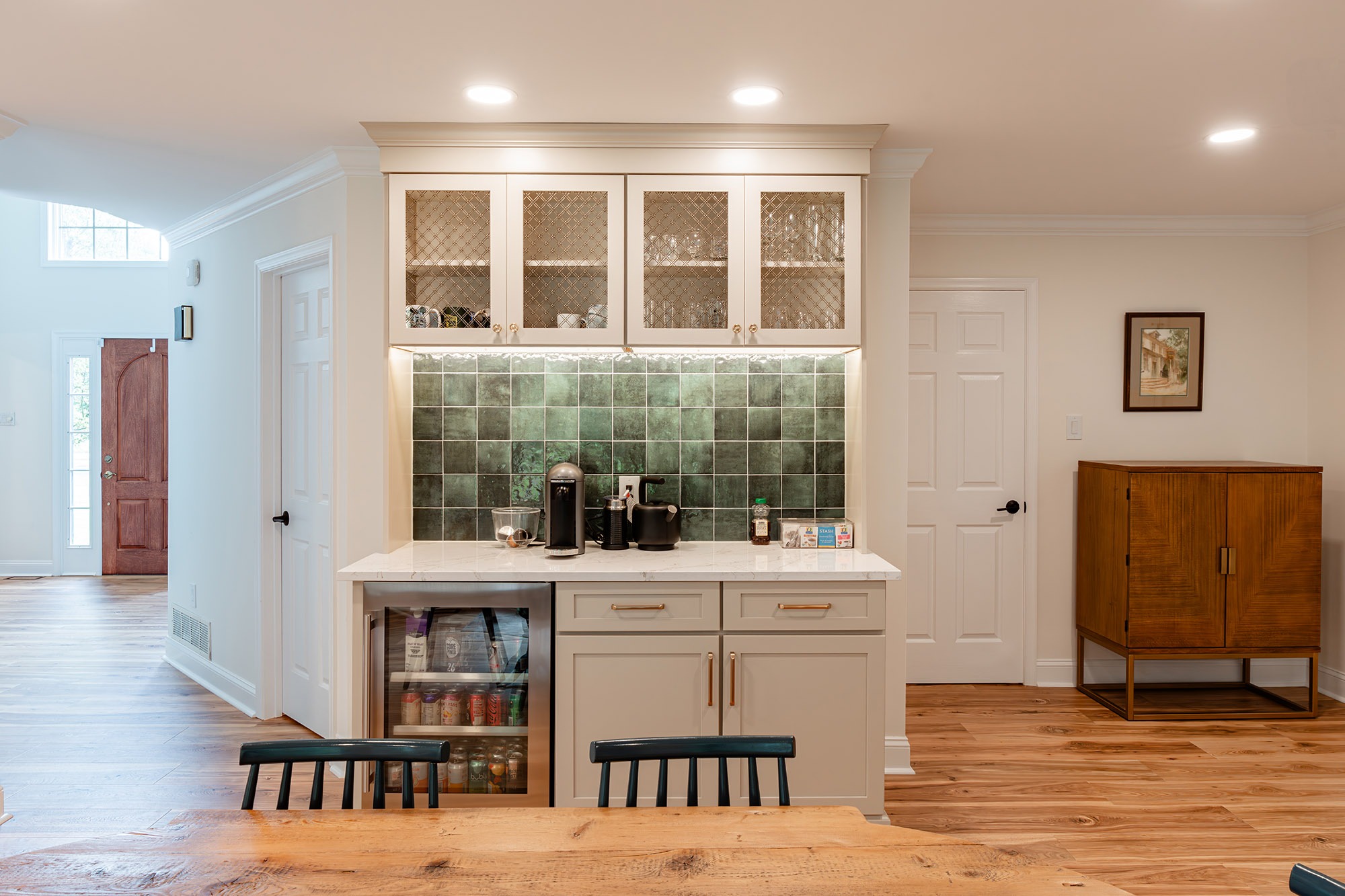 The New Hope first floor remodel was conceived to blend functionality with timeless beauty across key areas of the home including the kitchen, mudroom, music room, and powder room. The design team worked closely with the homeowners to ensure that every space was not only visually cohesive but also elevated with purpose-driven upgrades. The overall palette merges soft, natural tones with bold accents, warm metals, and rich textures, striking a balance between comfort and sophistication. With a focus on personalized use and performance, each room now supports the family’s lifestyle through intelligent design and custom detailing.